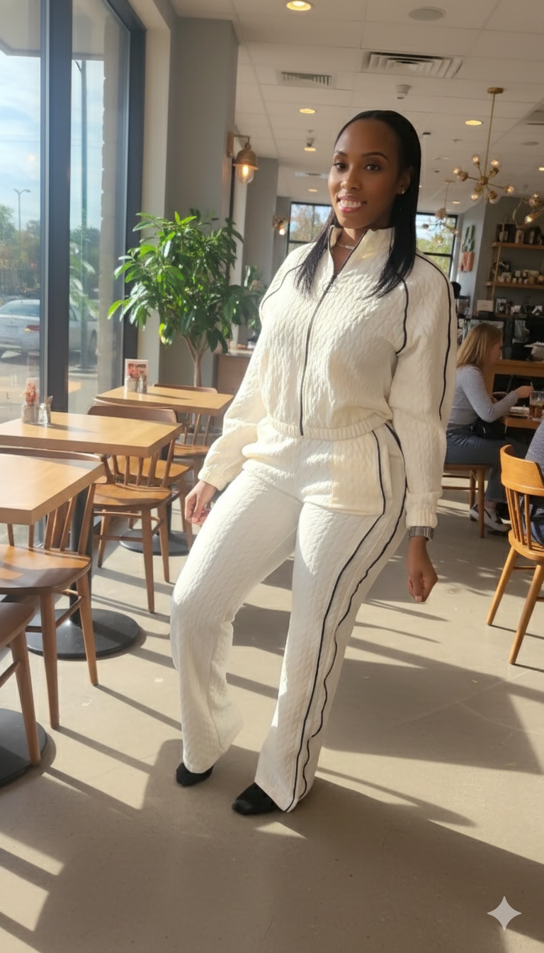 Pipping Stripes Front Zip Up Jacket and Pants Set