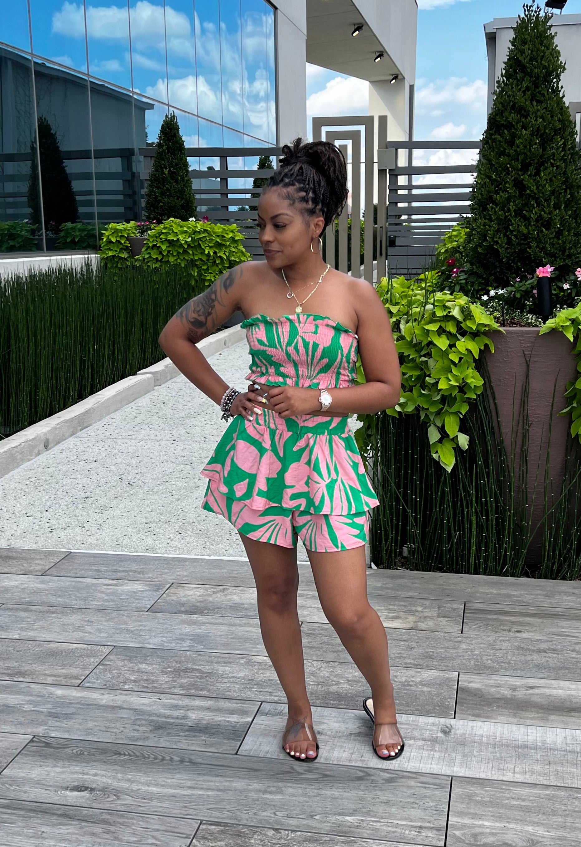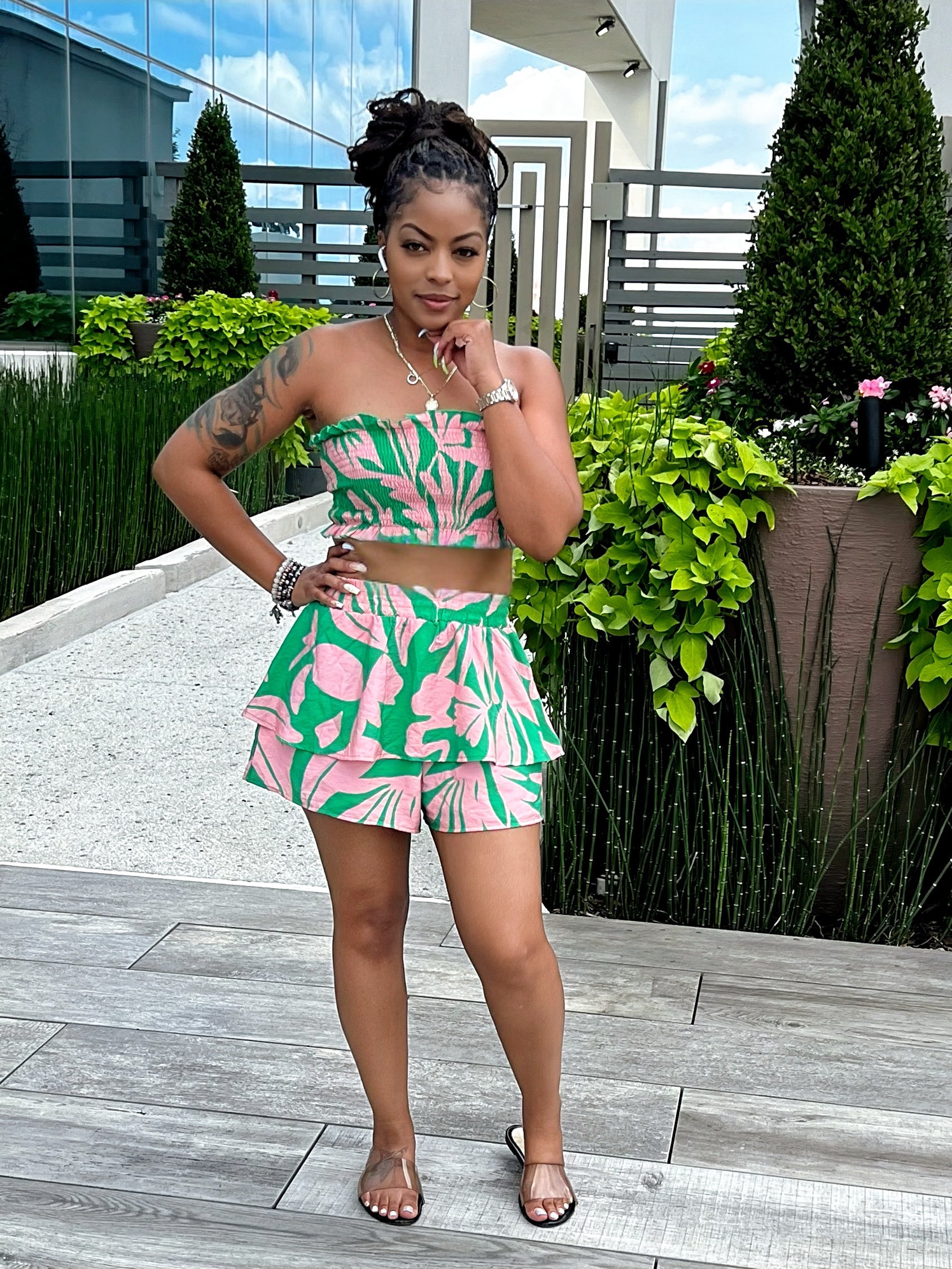 Tropical Elastic Shirring Tube Top and Shorts Set